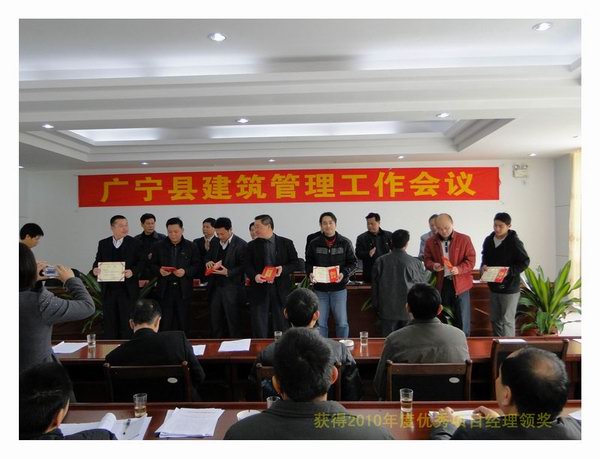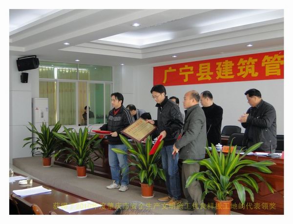 按照廣寧縣住房和城鄉(xiāng)規(guī)劃建設(shè)局寧住建字[2011]02號(hào)《關(guān)于表彰2010年度優(yōu)良樣板工程、“雙優(yōu)”工地、建筑管理優(yōu)秀先進(jìn)集體和個(gè)人的決定》的通知,由佛山市房建集團(tuán)有限公司施工的廣寧縣百盈花園24號(hào)樓獲得了四個(gè)獎(jiǎng)勵(lì),其中百盈花園24號(hào)樓;1、獲得了2010年度肇慶市安全生產(chǎn)文明施工優(yōu)良樣板工地(獲得獎(jiǎng)勵(lì)5000元);2、獲得2010年度優(yōu)秀項(xiàng)目經(jīng)理鄧建軍(獲得獎(jiǎng)勵(lì)800元);3、獲得2010年度、安全生產(chǎn)管理先進(jìn)工作者李盤(pán)基(獲得獎(jiǎng)勵(lì)500元);4、房建集團(tuán)有限公司獲得2010年度質(zhì)量、安全管理先進(jìn)單位(獲得獎(jiǎng)勵(lì)1000元)。