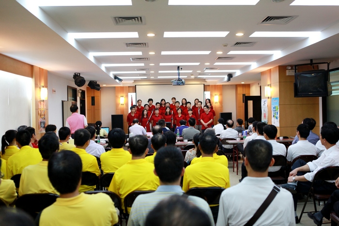 為慶祝中國共產(chǎn)黨成立90周年華誕,7月1日上午,房建集團(tuán)黨委在總部會(huì)場(chǎng)舉辦了一場(chǎng)氣氛莊嚴(yán)熱烈的“慶七一紅歌賽”。這次活動(dòng)得到各單位的重視和支持,集團(tuán) 10個(gè)單位共選送了23個(gè)節(jié)目,獨(dú)唱、合唱歌曲各占一半。