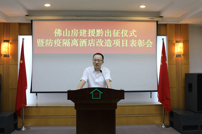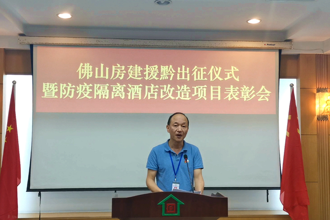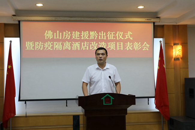 7月8日上午,佛山房建集團(tuán)舉行援黔出征儀式暨防疫隔離酒店改造項(xiàng)目表彰會,一方面為赴貴州黔東南州對口援建青年工程師包劍靈同志送行,另一方面為防疫隔離酒店改造項(xiàng)目的優(yōu)秀工作者進(jìn)行表彰。