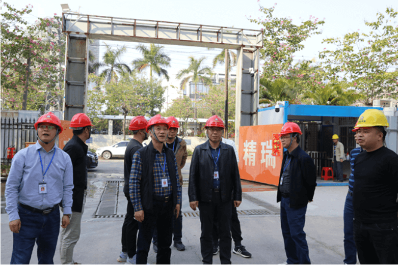 2月22日,房建集團(tuán)董事長(zhǎng)顏琦,房建集團(tuán)副董事長(zhǎng)、精瑞公司董事長(zhǎng)李少阮,房建集團(tuán)董事總經(jīng)理、精瑞公司董事總經(jīng)理鄒輝鑾等集團(tuán)董事會(huì)領(lǐng)導(dǎo)一行赴項(xiàng)目施工現(xiàn)場(chǎng),開展節(jié)后復(fù)工復(fù)產(chǎn)巡查。李航、陳源、馮健燦、曾茂青等相關(guān)領(lǐng)導(dǎo)陪同。