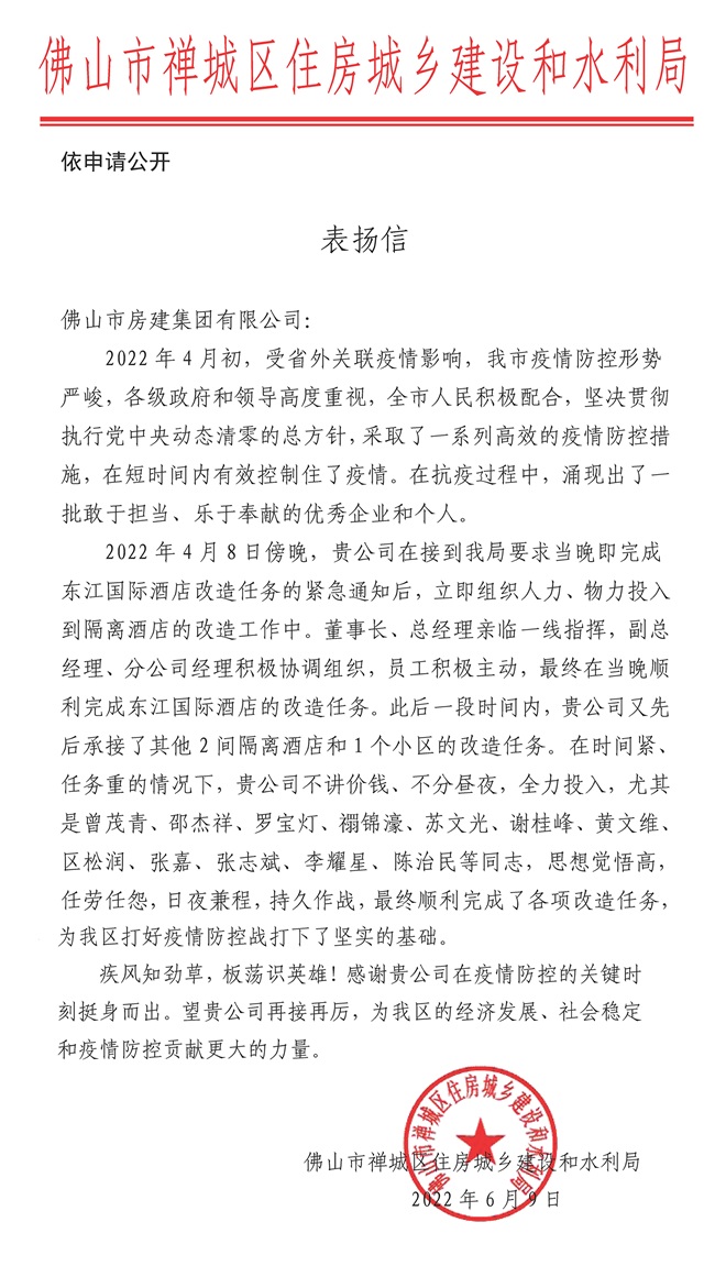 佛山房建集團(tuán)扎根佛山65載,我們不僅注重企業(yè)自身發(fā)展,更將社會責(zé)任融入到企業(yè)文化建設(shè)中,做有溫度有擔(dān)當(dāng)?shù)钠髽I(yè)。過去的2022年新冠疫情肆虐,我們勇當(dāng)“抗疫急先鋒”,為我市疫情防控工作派遣相關(guān)人員逾1000人次,涉及高速公路口疫情防控、多個防疫隔離酒店改造建設(shè)等防控工作;東西部協(xié)作大潮,我們積極響應(yīng),派遣青年工程師前往支援;人民群眾有困難,我們大力捐資贈物,解燃眉之急。