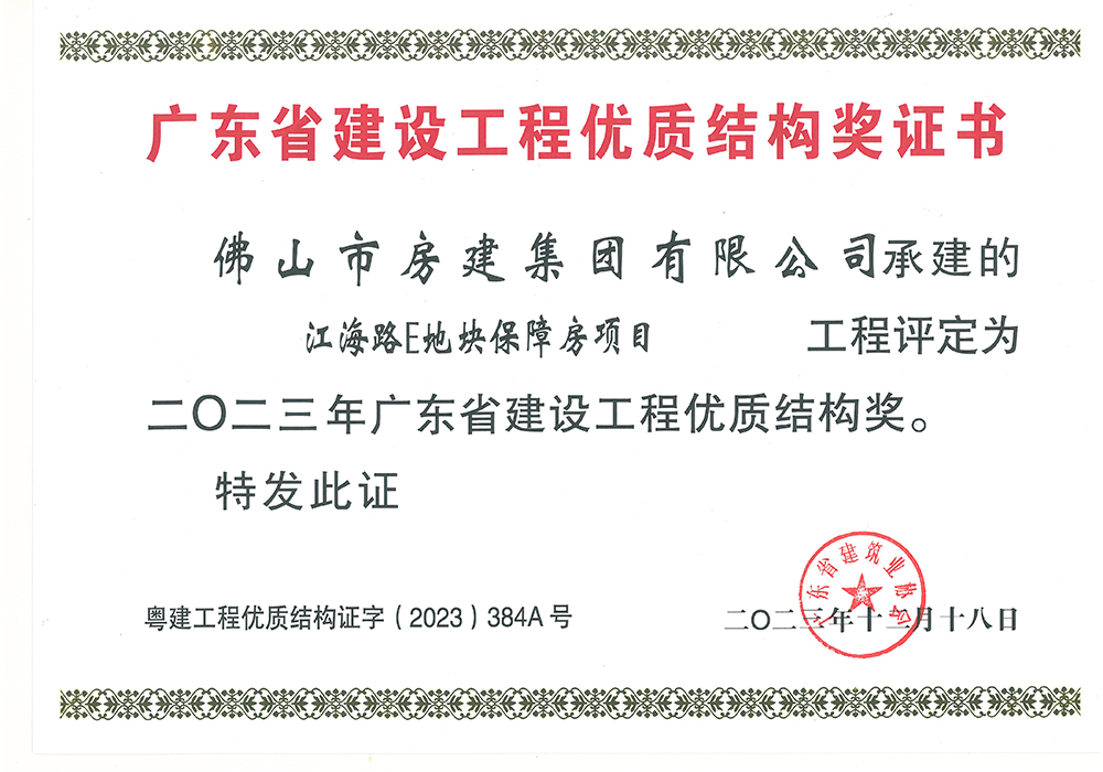 廣東省建設(shè)工程優(yōu)質(zhì)結(jié)構(gòu)獎(jiǎng)